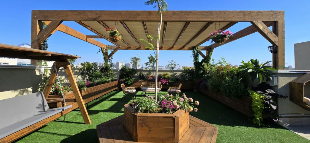 הקמת גינות גג / יצירת אדניות מעץ / מערכות השקיה מתקדמות